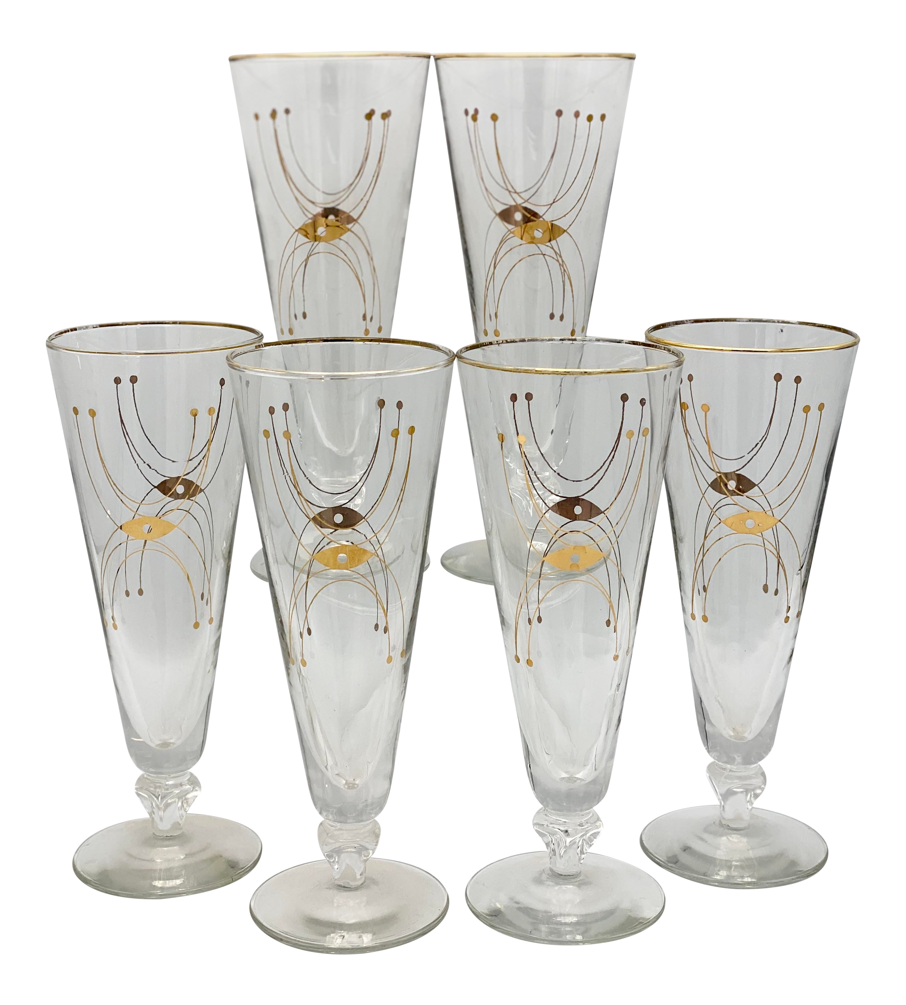 Mid Century Space Age Gold Atomic Sputnik Pilsner Glasses Set Of 6 Chairish